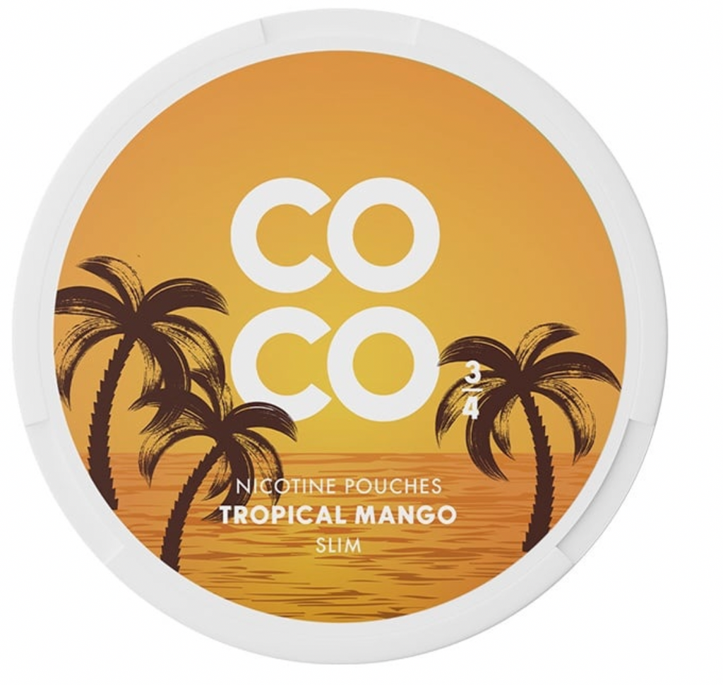 COCO Tropical Mango are nicotine pouches with a nicotine content of 10mg/pouch. The pouches have a tropical flavour of juicy mango.